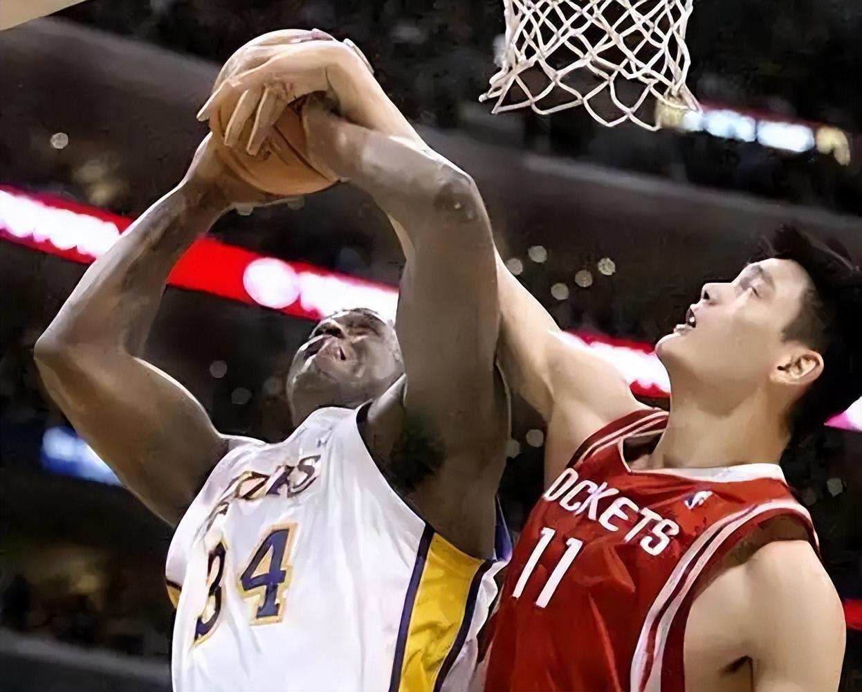 姚明和奥尼尔在职业生涯里有过很多次交手,常规赛碰了13次,季后赛相遇5次。第一次比赛,姚明开场表现很出色,连着给奥尼尔3个盖帽,自己还得了6分,可后来就有点扛不住了。奥尼尔发力,用身体硬挤姚明,那场比赛他得了31分、13个篮板,姚明也有10分、10个篮板、6个盖帽,火箭通过加时赛险胜湖人。